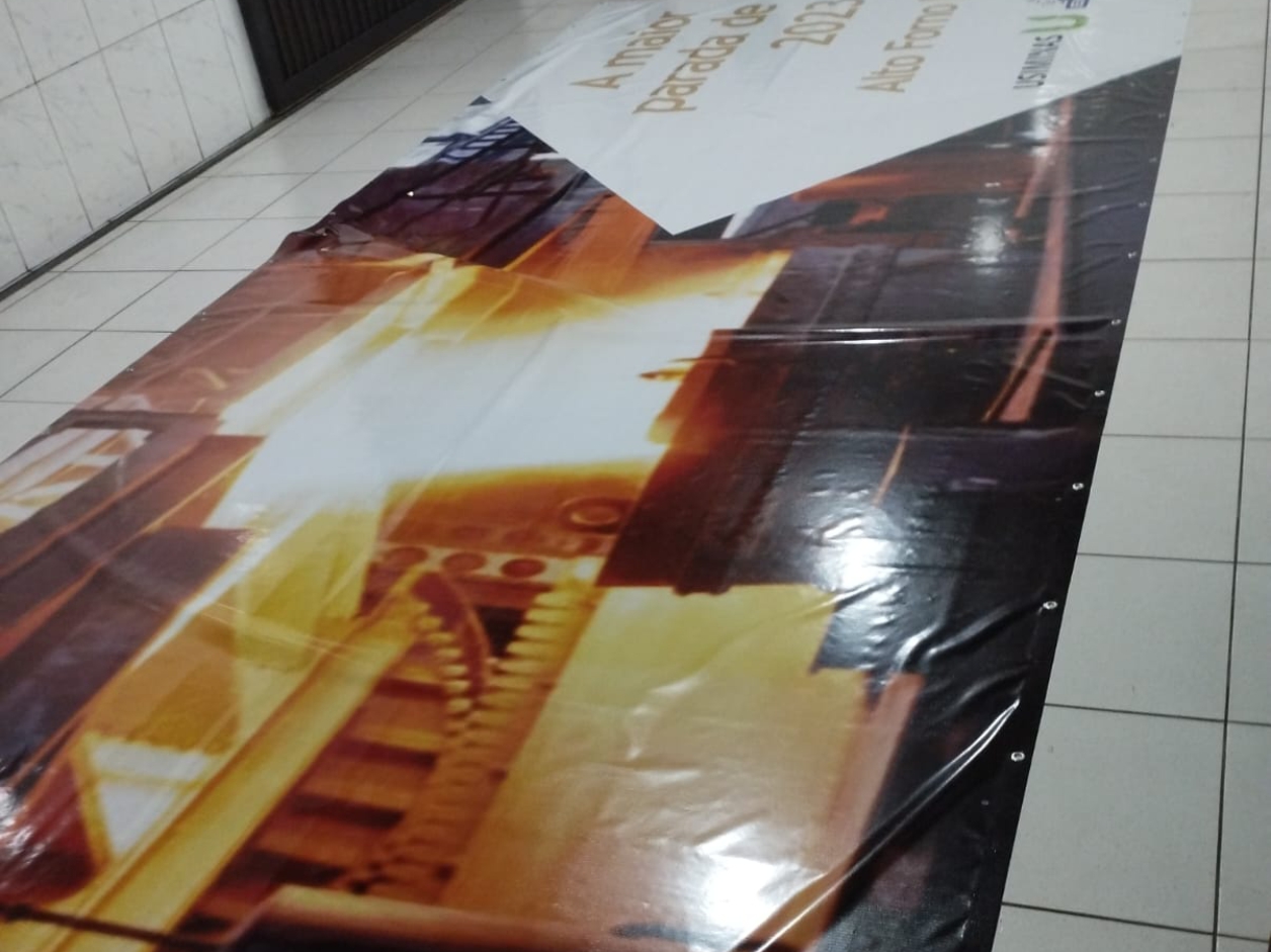Impressão alta resolução grandes formatos com até 3,20m. Sem emenda.